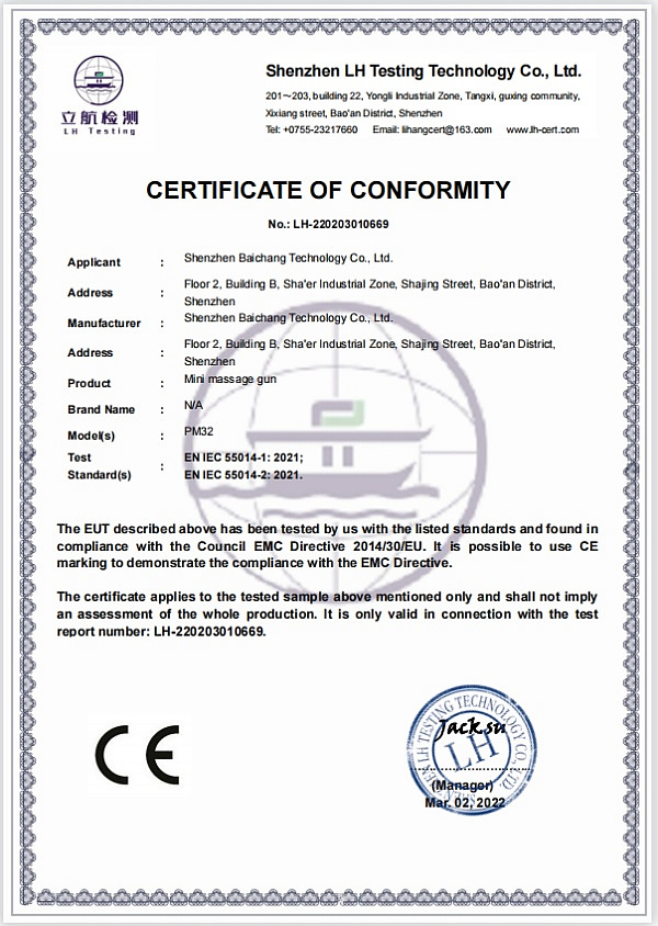 百昌筋膜枪PM32资质