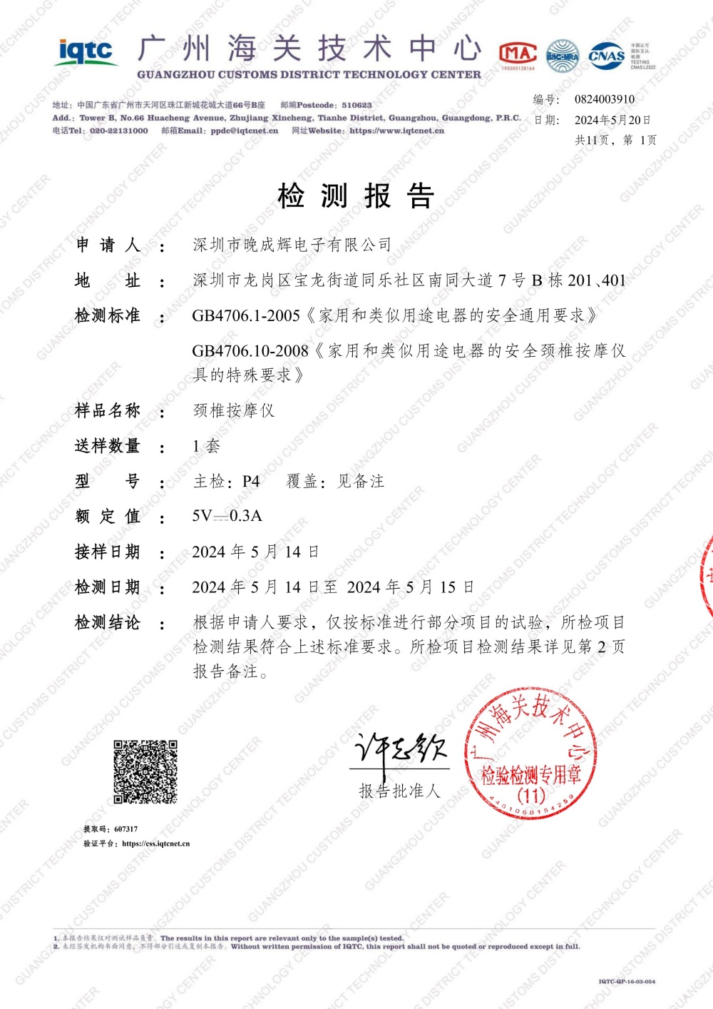 深圳市晚成辉电子-颈椎按摩仪-ROHS2.0证书