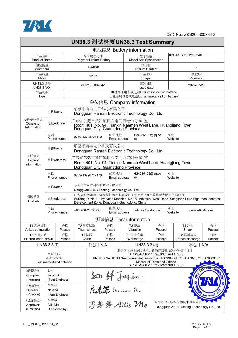1200毫安-UN38.3